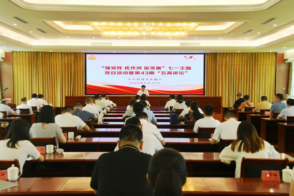 在中国共产党成立104周年之际,省委编办围绕深入贯彻中央八项规定精神学习教育主题,组织开展“强党性 优作风 促发展”七一主题党日活动暨第43期“五高讲坛”。活动通过赴省委党校警示教育馆现场见学、集体重温入党誓词、颁发“光荣在党50年”纪念章、办主要领导讲党课等形式,教育引导全办党员干部职工进一步深刻感悟习近平总书记关于加强党的作风建设的重要论述精神,深化学习教育成效,涵养优良作风。