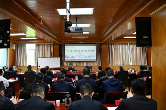 为深入学习贯彻习近平文化思想,大力推进机关文化建设,丰富干部职工的精神文化生活,近日,省委编办机关工会举办诗词鉴赏知识讲座,邀请省老年大学客座教授廖建国同志授课。讲座中,廖建国教授以“中华诗词是传统文化之引擎”为核心主题,围绕承载历史记忆、塑造民族品格、驱动文化发展等方面进行深入解析,为大家上了一堂精彩生动的诗词鉴赏课。此次讲座帮助干部职工进一步提高了文化修养,推动办机关进一步形成“读书学习、修身养志、增长才干”的浓厚氛围。